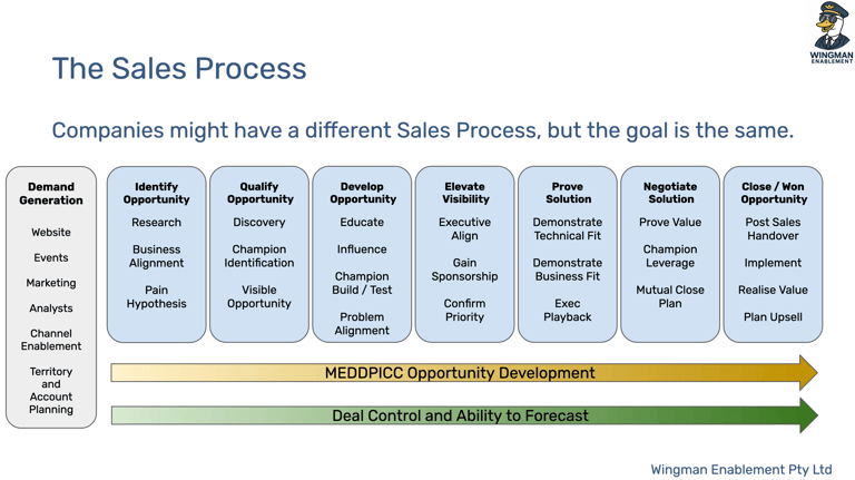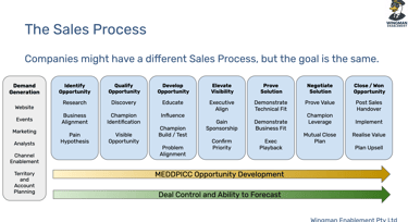 Your Sales Process that helps Sellers progress from opportunity identification (PG) through discovery and qualification in order to develop, differentiate and negotiate the deal